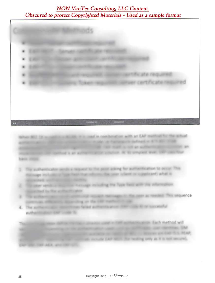 VanTek Consulting, LLC may at times "Re-Brand" courses and course content for the exclusive use by VanTek Consulting, LLC while contracting / representing other companies and providing training on their behalf.